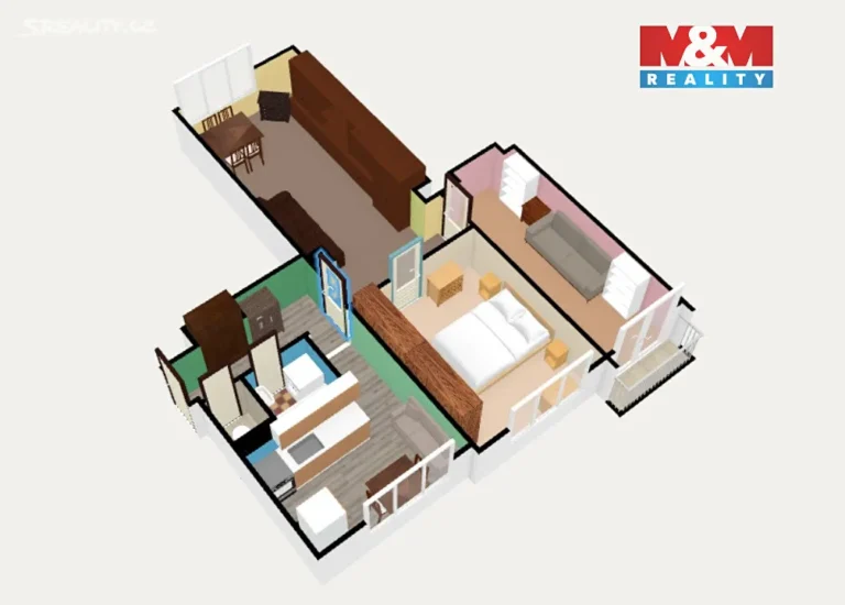 Byt nabízí praktickou dispozici, která je ideální jak pro rodiny s dětmi, tak pro páry nebo jednotlivce hledající dostatek prostoru: